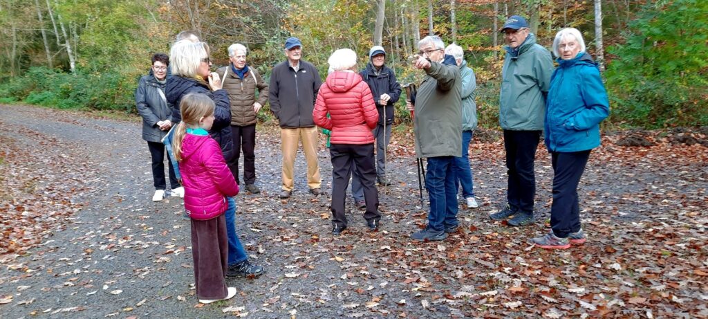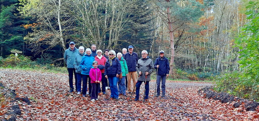 Nach einem frischen Wind noch beim Start zeigte der Herbst seine schöne Seite auf den leicht begehbaren Wegen zwischen den Ortsteilen Huchenfeld und Hohenwart. Die Gruppe war dieses Mal etwas kleiner als sonst üblich.