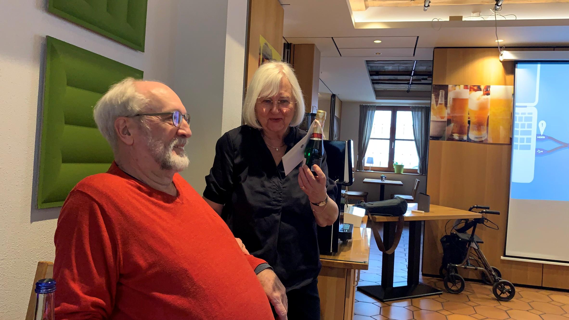 Nach über 200 Bildern belohnte das Publikum Walter A. Schaupp für seinen informativen und unterhaltsamen Vortrag mit herzlichem Applaus. Mit dem Wunsch nach einer Fortsetzung mit weiteren Motiven bedankte sich Uschi Mittag bei Walter A. Schaupp mit einem kleinen Geschenk.