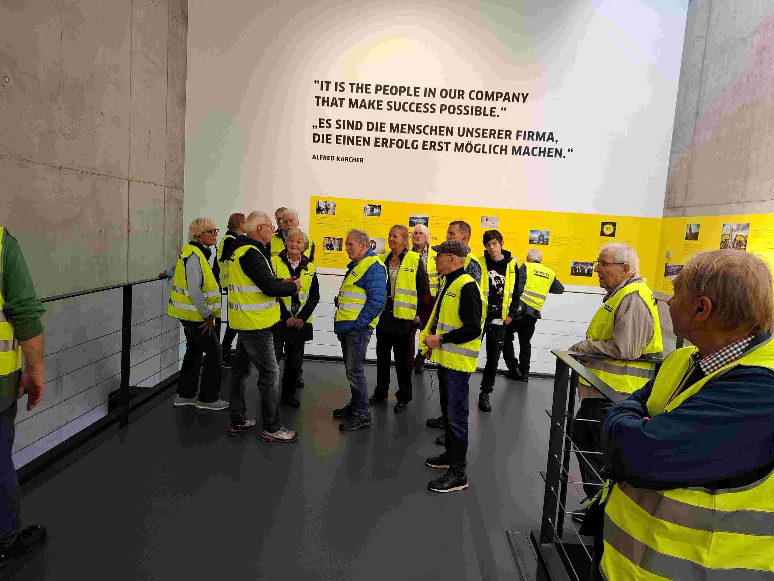 Den Auftakt nach der Begrüßung bildete ein Mittagessen im Gästekasino. Ausgerüstet mit Kärcher-Warnwesten ging es zum Museum. Auf rund 400 qm können sich die Besucher ein Bild über die 85-jährige Geschichte des Unternehmens machen.